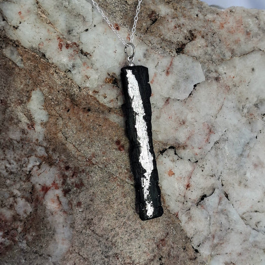 Aoife - Irish bog oak with fine silver leaf and sterling silver chain
