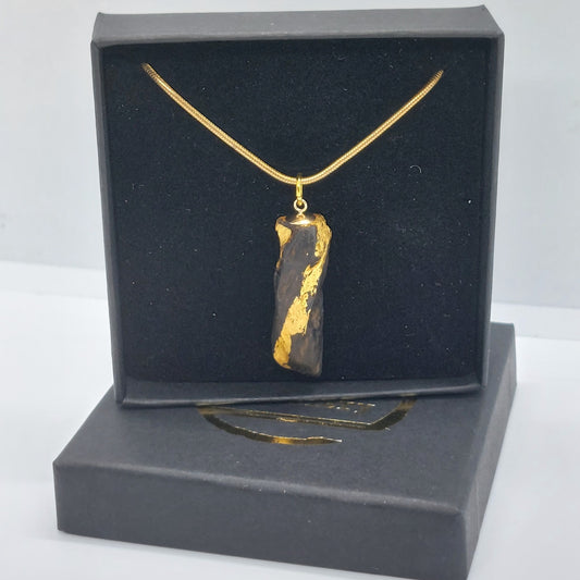 Droibhéalach - Irish bog oak necklace with 23.75ct gold leaf
