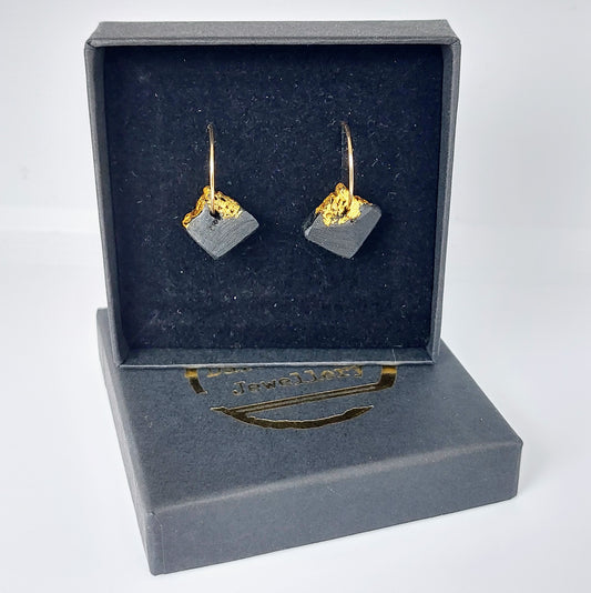 Enya - Irish bog oak earrings with 23.75ct gold leaf