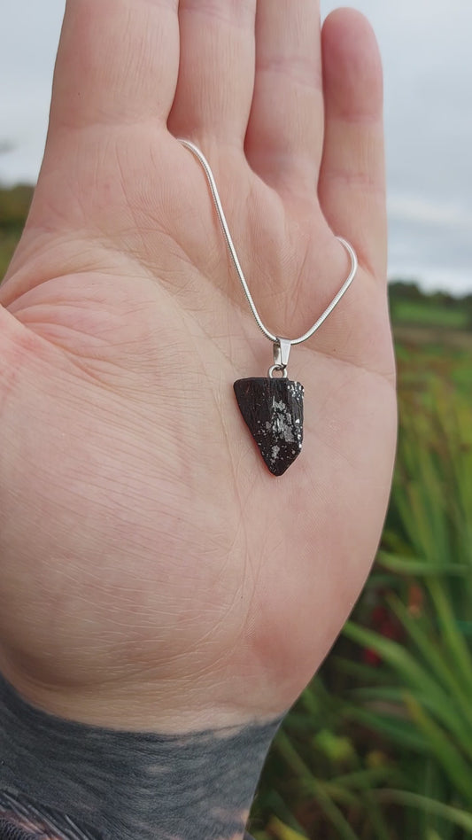 Eiteog - Irish bog oak necklace with fine silver leaf and sterling silver chain