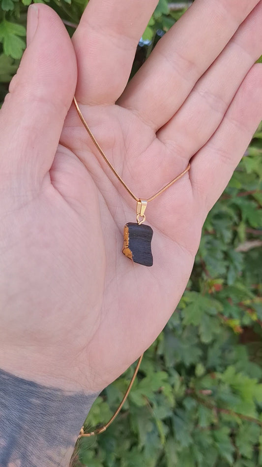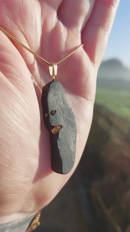 Éadaoin - Irish bog oak necklace with 23.75ct gold leaf