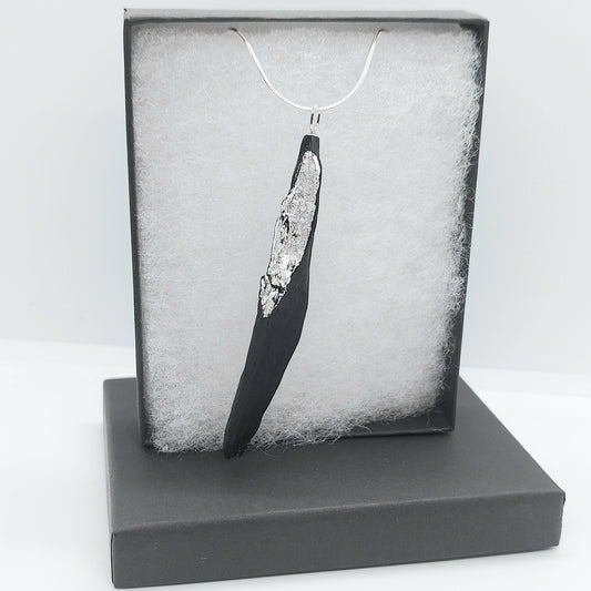 Sciathán - Irish bog oak with fine silver leaf and sterling silver chain