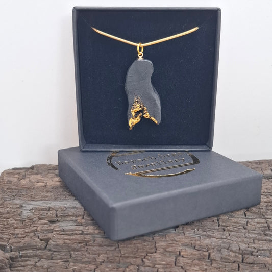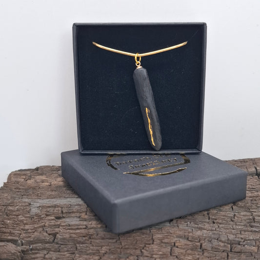 Aurnia - Irish bog oak necklace with 23.75ct gold leaf
