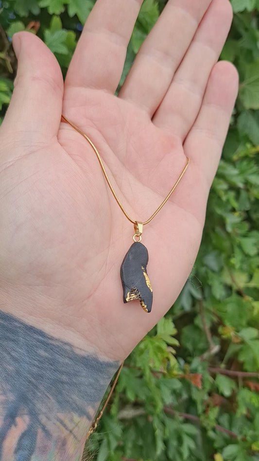 Blaine - Irish bog oak necklace with 23.75ct gold leaf