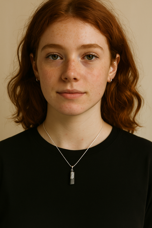 Muireann - Irish bog oak with fine silver leaf and sterling silver chain