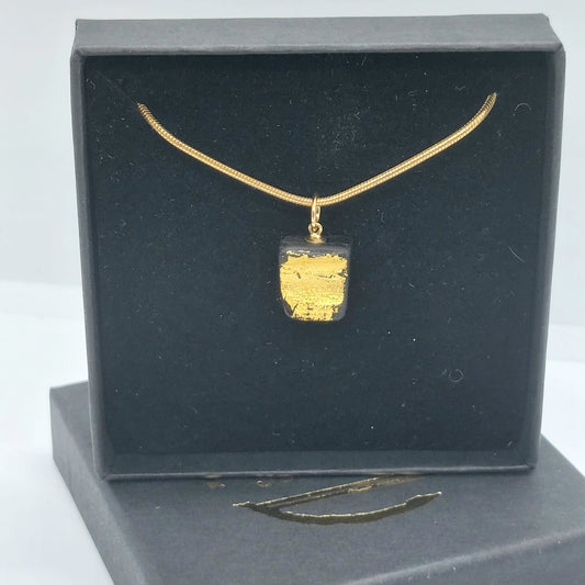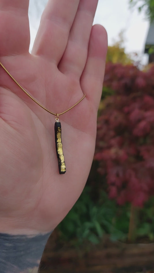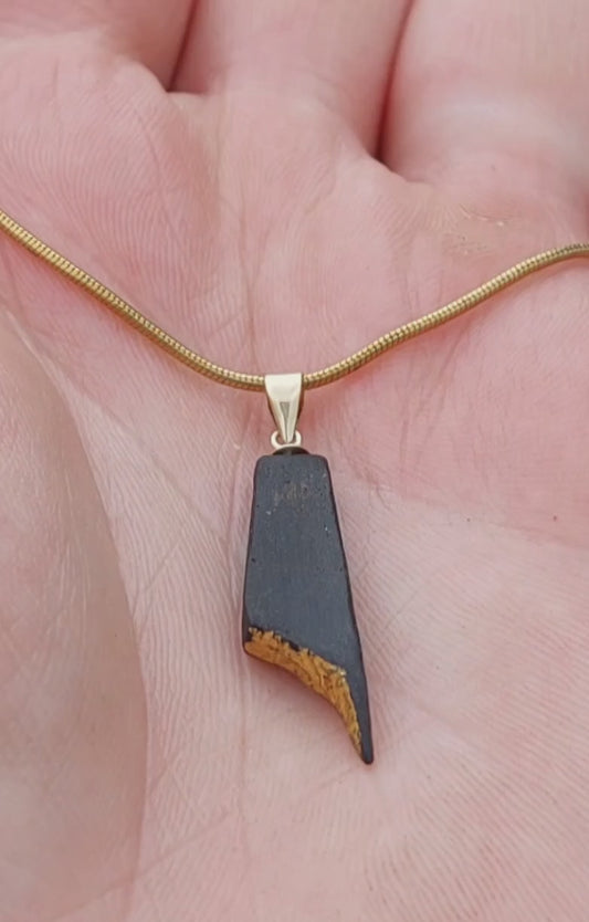 Fiacail Bheag - Irish bog oak necklace with 23.75ct gold leaf