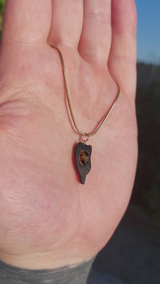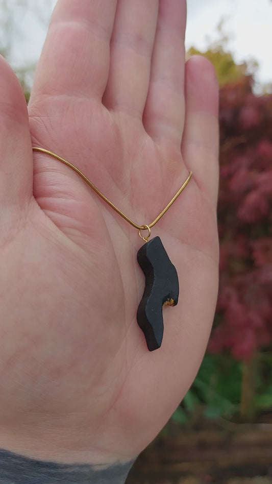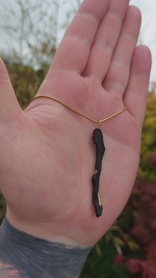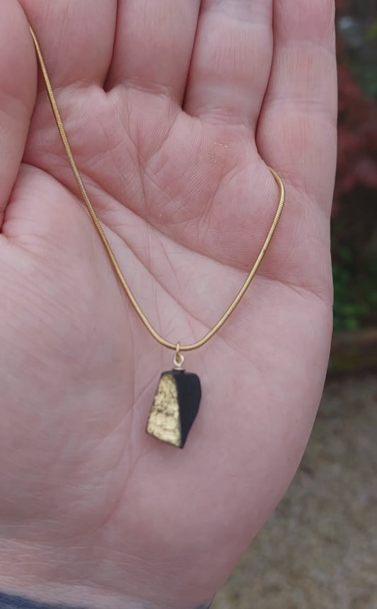 Scáthach - Irish bog oak necklace with 23.75ct gold leaf