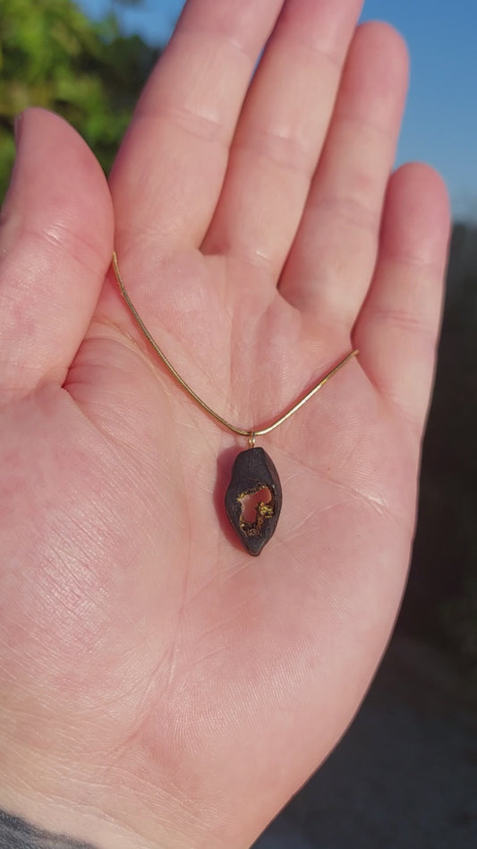 Turf Footin' - Irish bog oak necklace with 23.75ct gold leaf