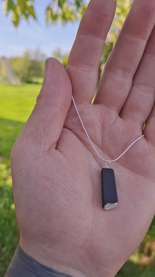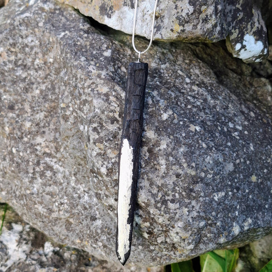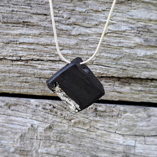 Plámás - Irish bog oak with fine silver leaf and sterling silver chain