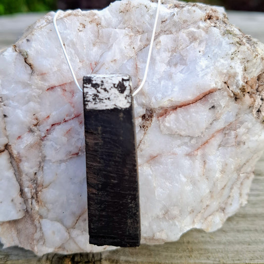Lichen - Irish bog oak with fine silver leaf and sterling silver chain
