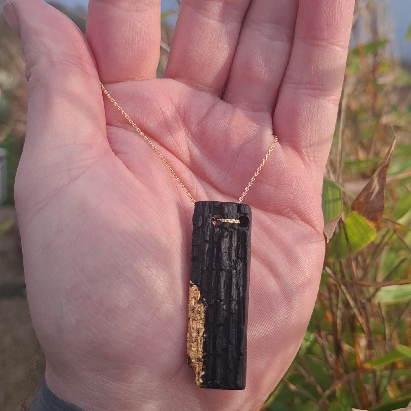 Aimsir – Halskette aus irischer Mooreiche mit 23,75-karätigem Blattgold