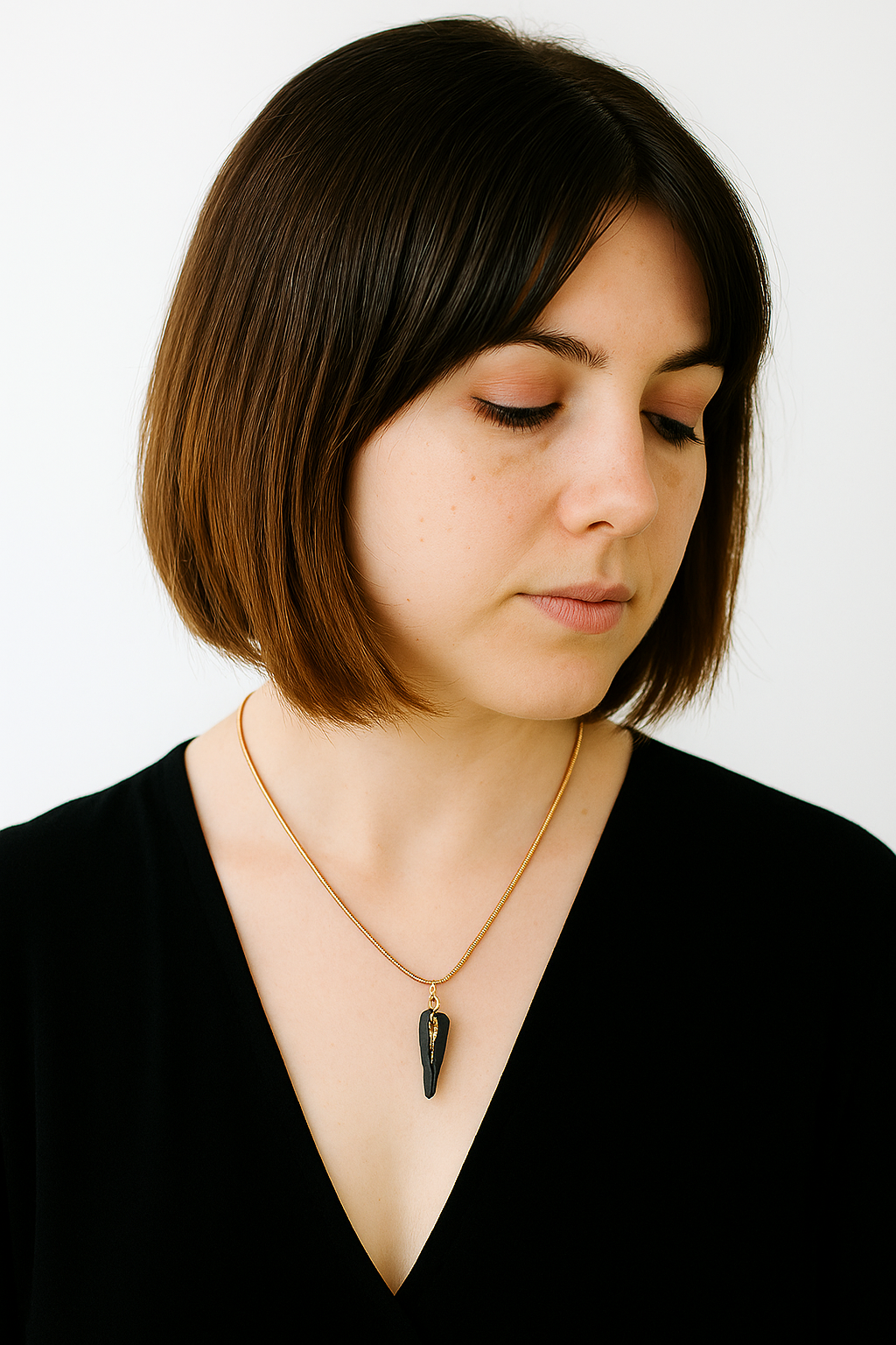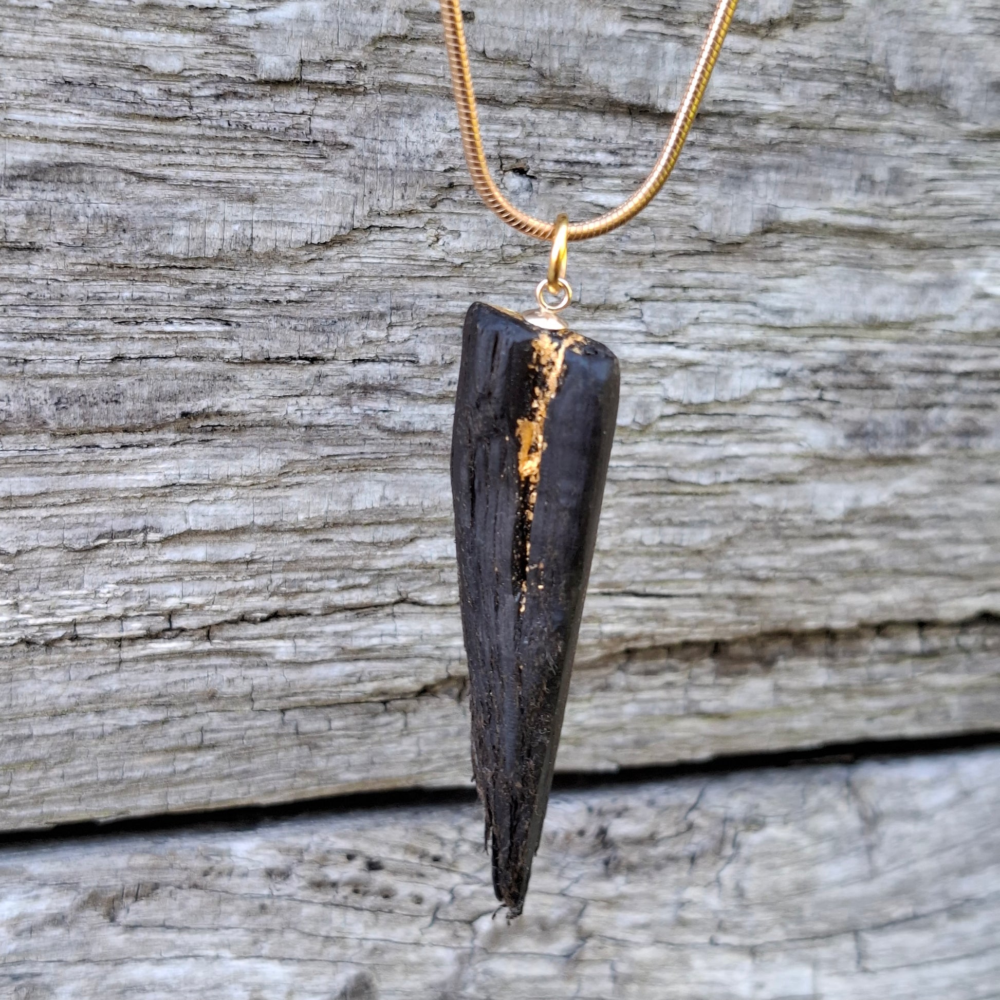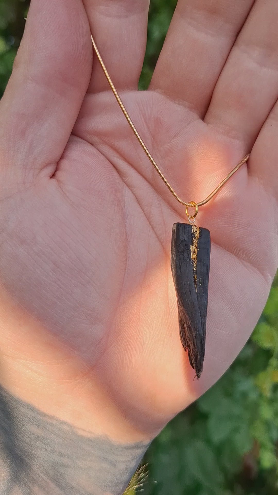 Bláth - Irish bog oak necklace with 23.75ct gold leaf