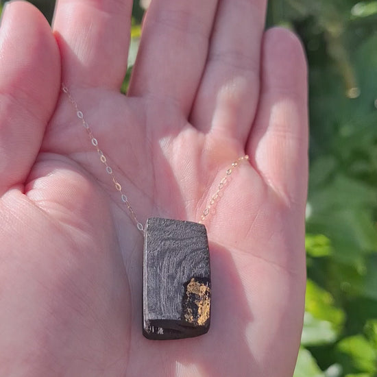 Cadhla II - Irish bog oak necklace with 23.75ct gold leaf