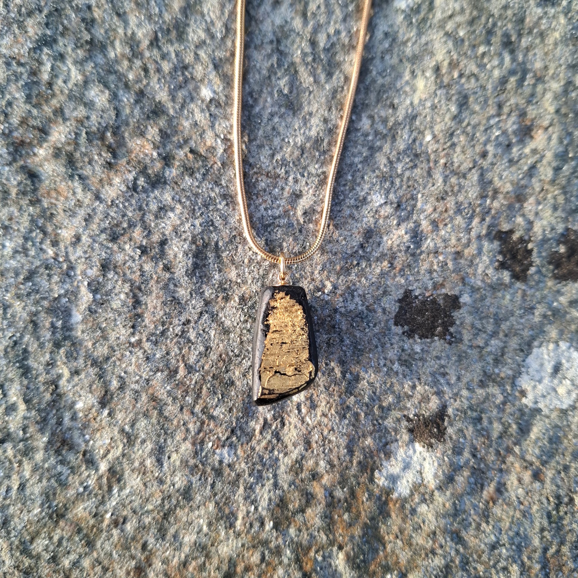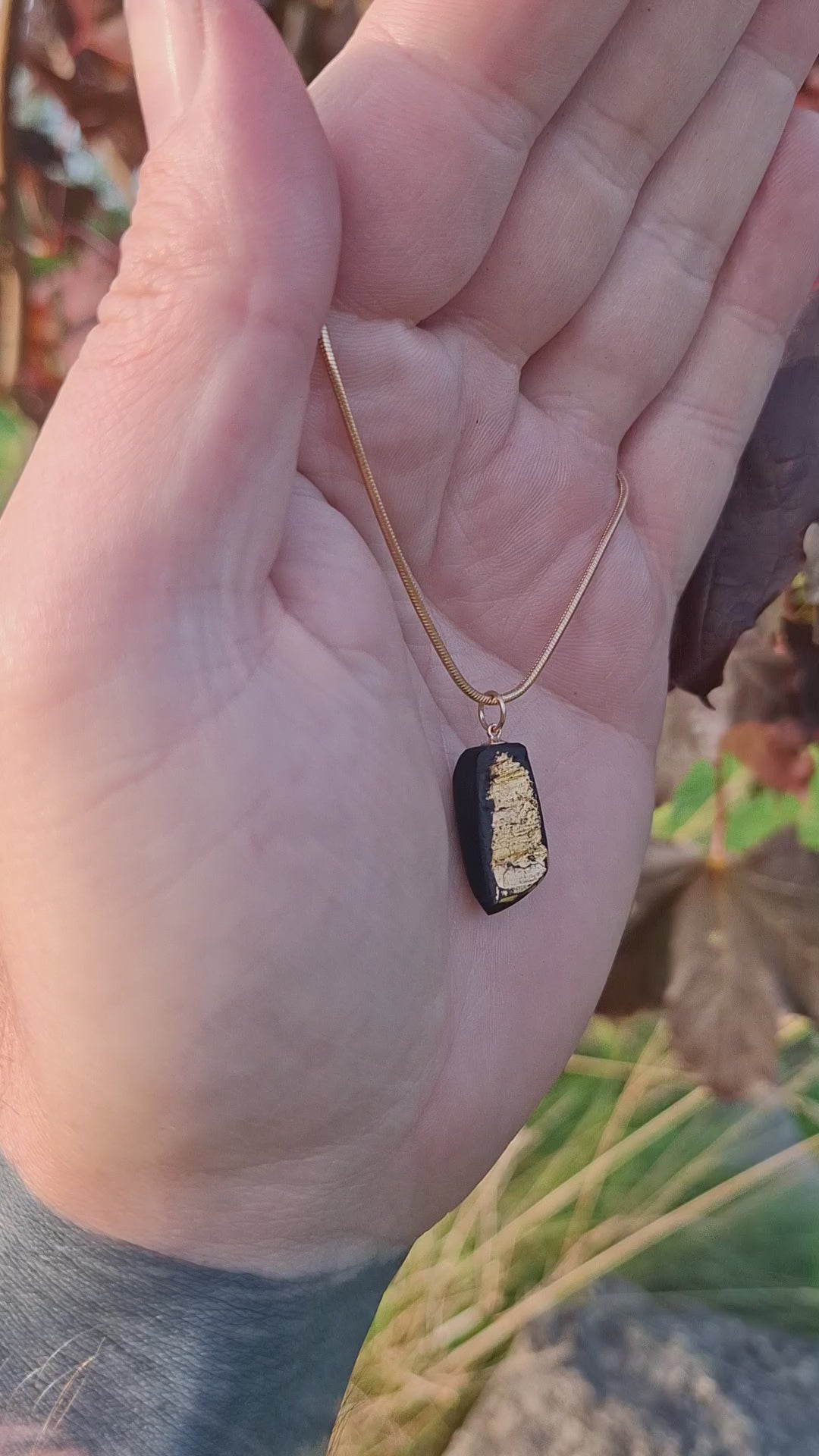 Fiona - Irish bog oak necklace with 23.75ct gold leaf