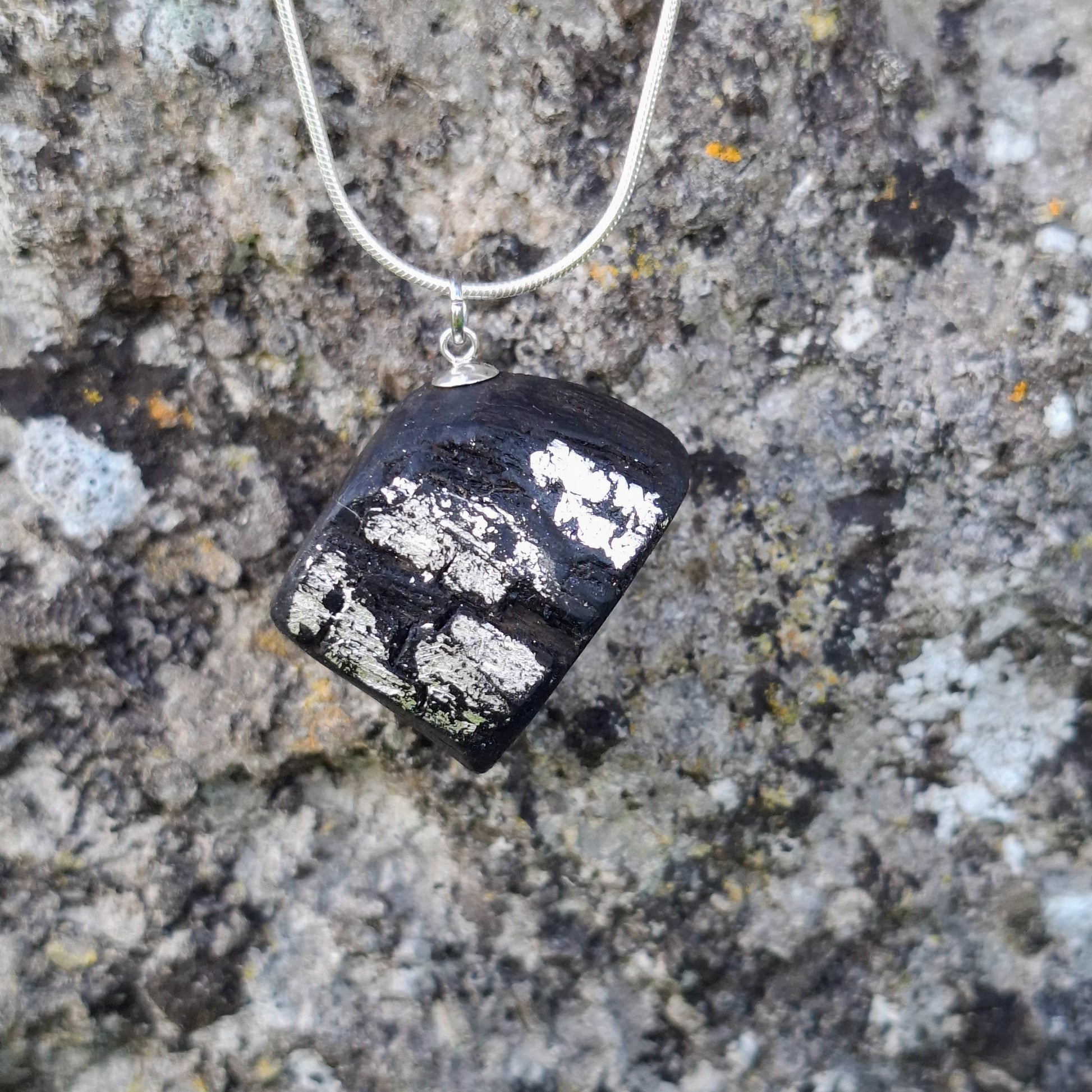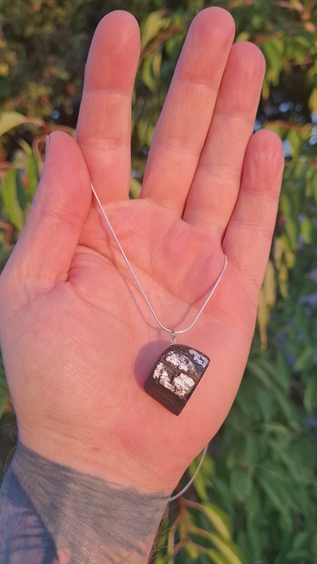 Lichen - Irish bog oak with fine silver leaf and sterling silver chain