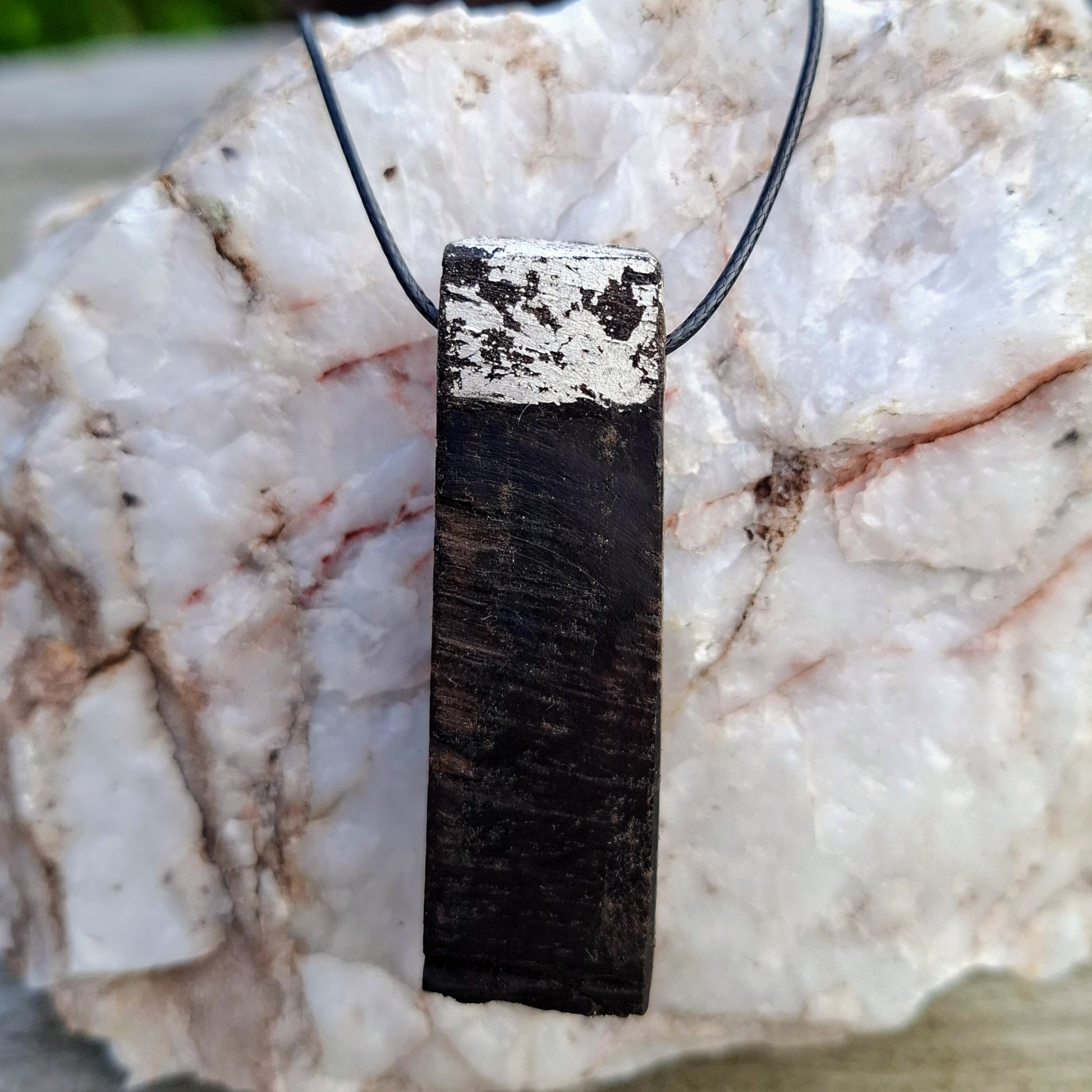 Luíseach - a beautiful Gaelic name derived from Lugh, which means "light". The pendant is made from ancient bog oak sourced near Athenry, Co. Galway, Ireland - estimated to be between 3,000 and 6,000 years old. It is embellished with delicate, fine silver leaf, sterling silver findings and comes with various options of chains. Pictures of all will be available soon. Message me if you need details in the meantime.
