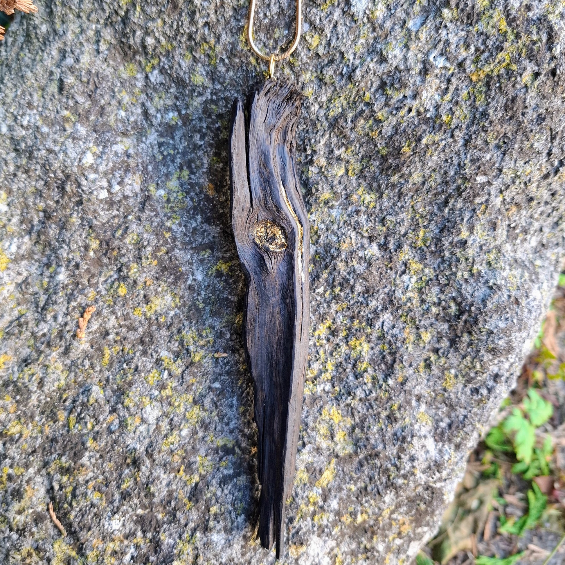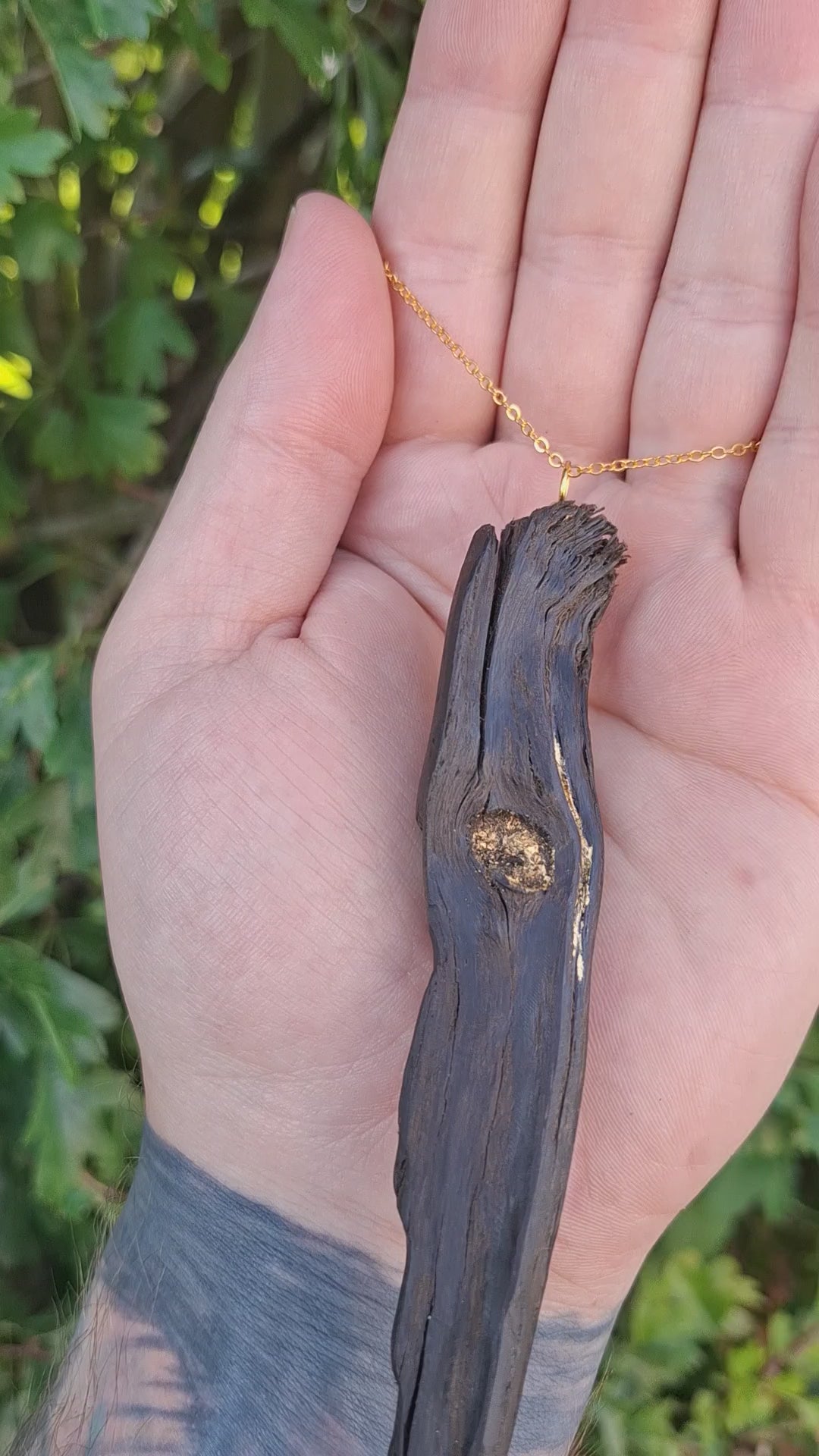 Misneach - Irish bog oak necklace with 23.75ct gold leaf