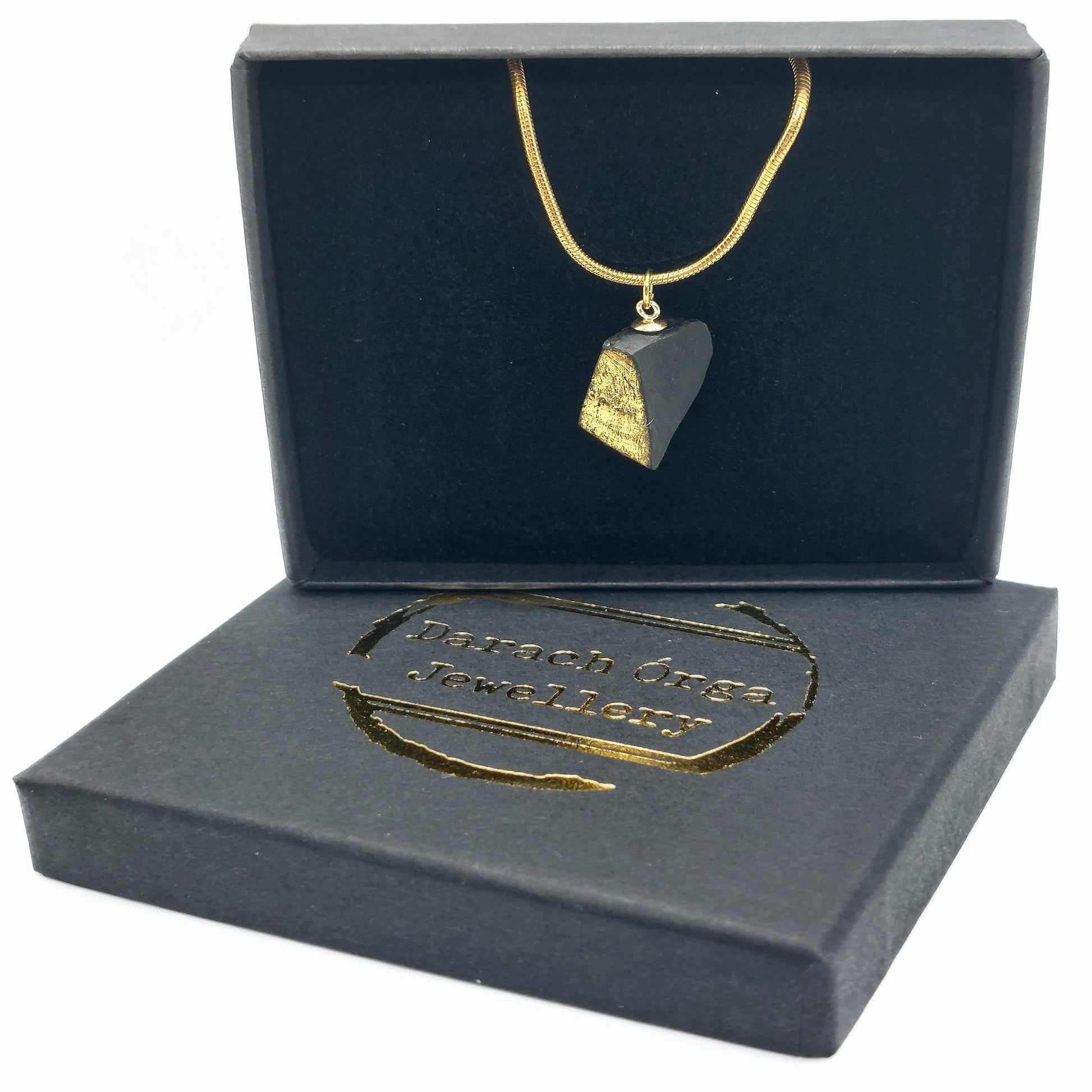 Muadhnait - the little noble one proudly showing its wealthy golden side. This pendant was crafted from ancient bog oak found in the Sliabh Aughty mountains on the Galway/Clare country border.