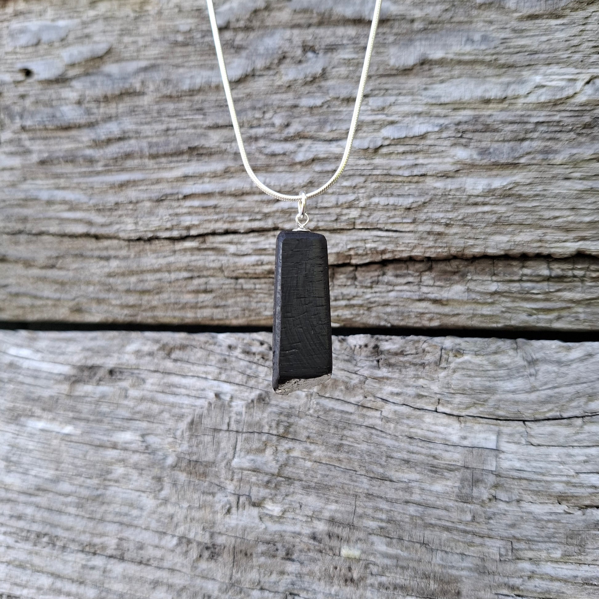 Plámás - Irish bog oak with fine silver leaf and sterling silver chain
