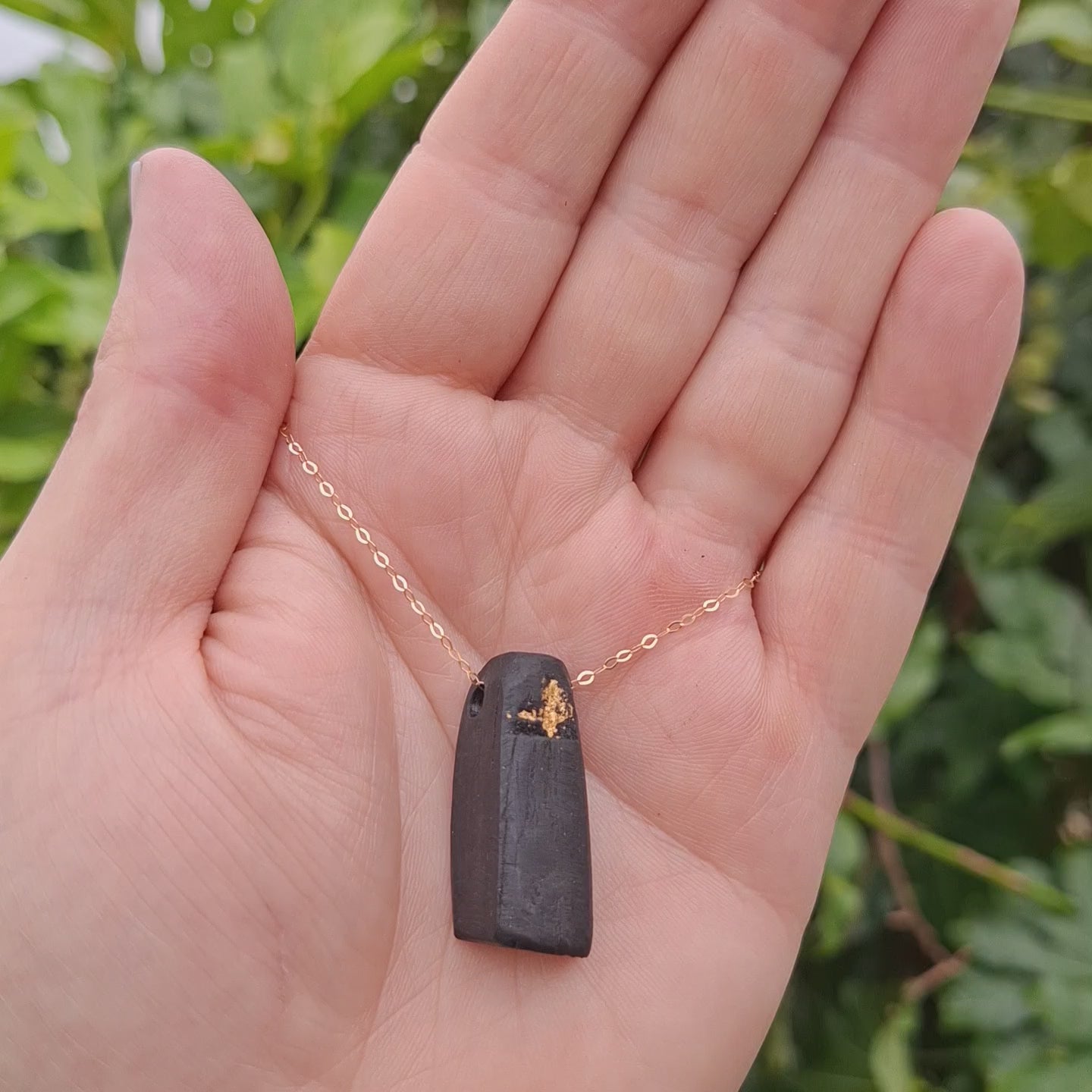 Réalta - Irish bog oak necklace with 23.75ct gold leaf