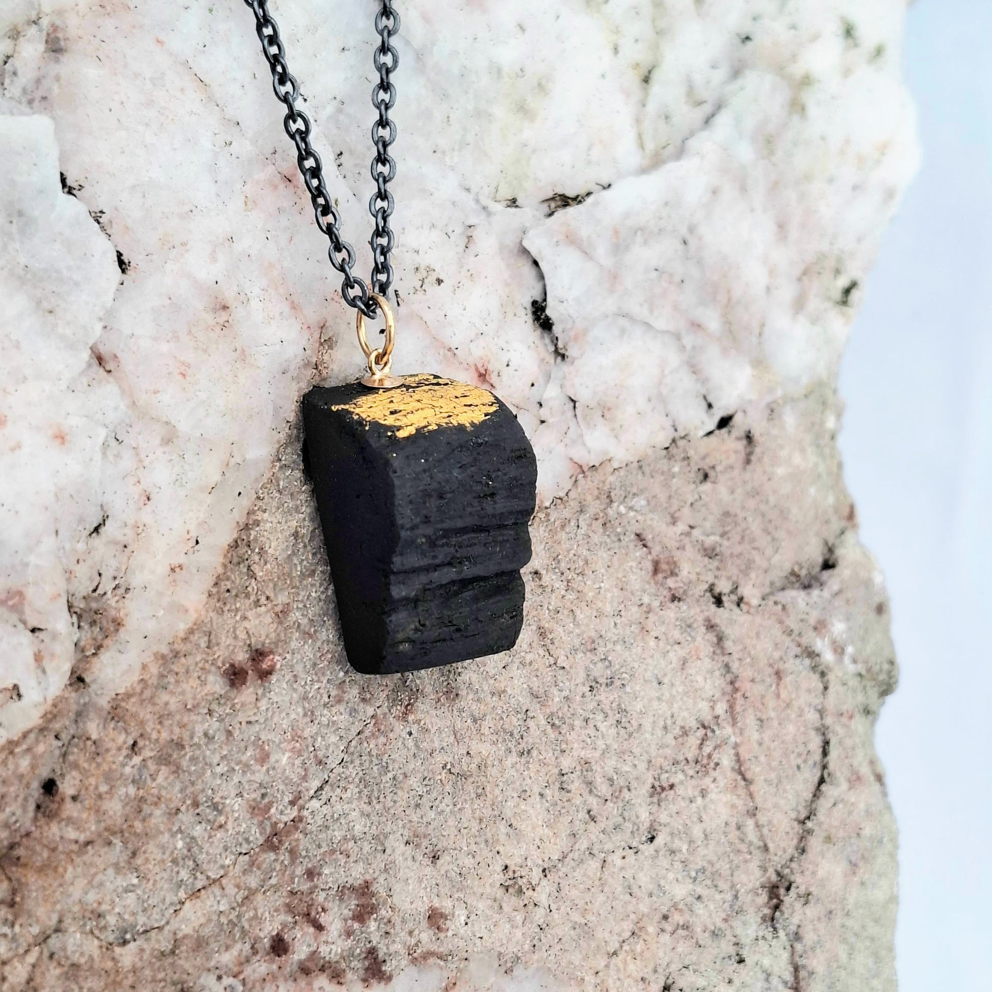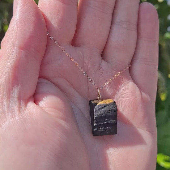 Ríoghnach - Irish bog oak necklace with 23.75ct gold leaf