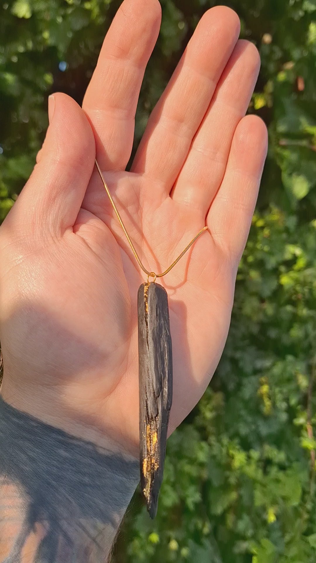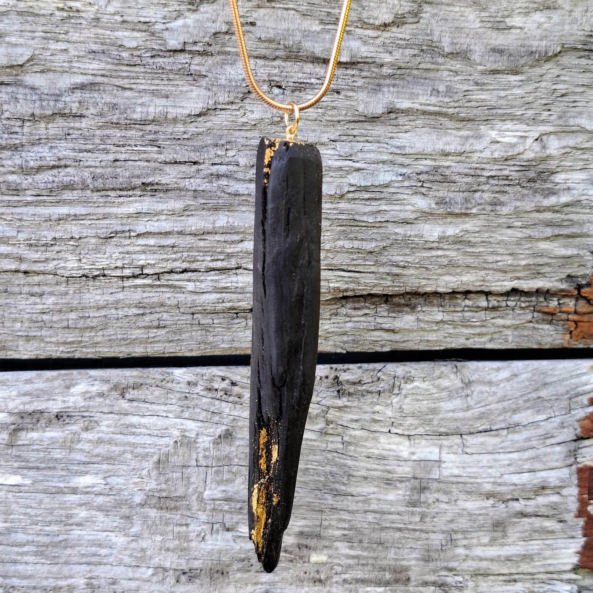 Saoirse - Irish bog oak necklace with 23.75ct gold leaf
