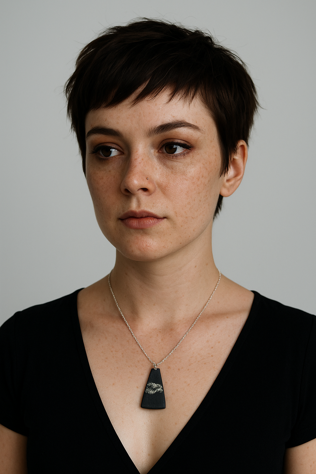The pendant is made from ancient bog oak in the Athenry region of Co Galway and estimated to be between 3,000 and 6,000 years old. It is embellished with a little delicate fine silver leaf and comes with various options of chains:
