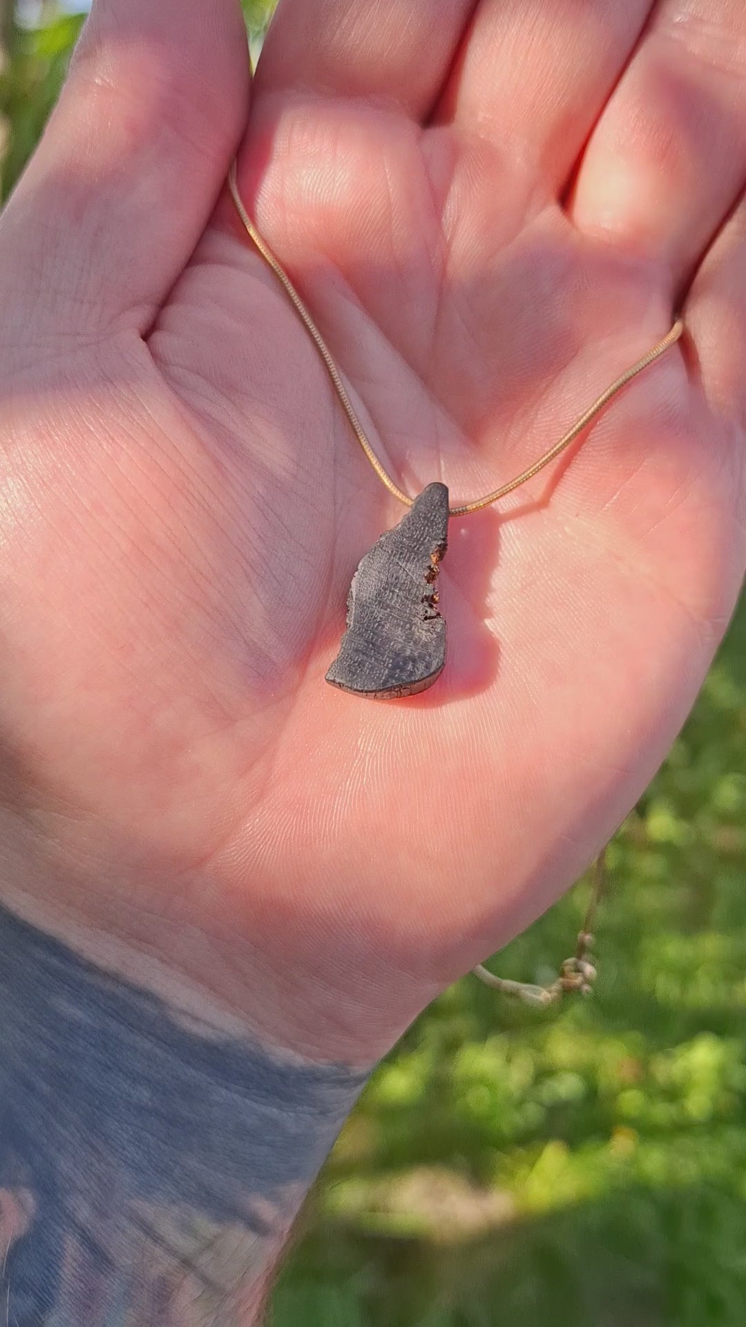 Sona - meaning Happy, lucky, fortunate. A little abstract shaped pendant made from Irish bog oak finished with a little 23.75ct gold leaf! It comes with various options of chains. Pictures of all will be available soon. Message me if you need details in the meantime.