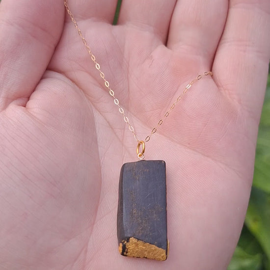 Treasa - Irish bog oak necklace with 23.75ct gold leaf