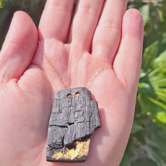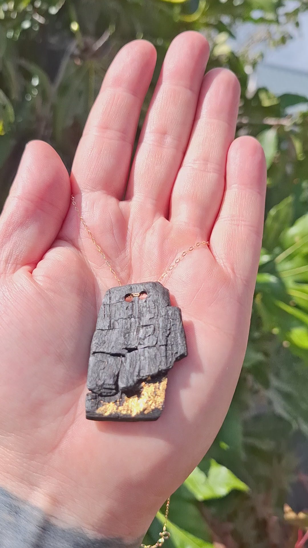 Uathúil - Irish bog oak necklace with 23.75ct gold leaf